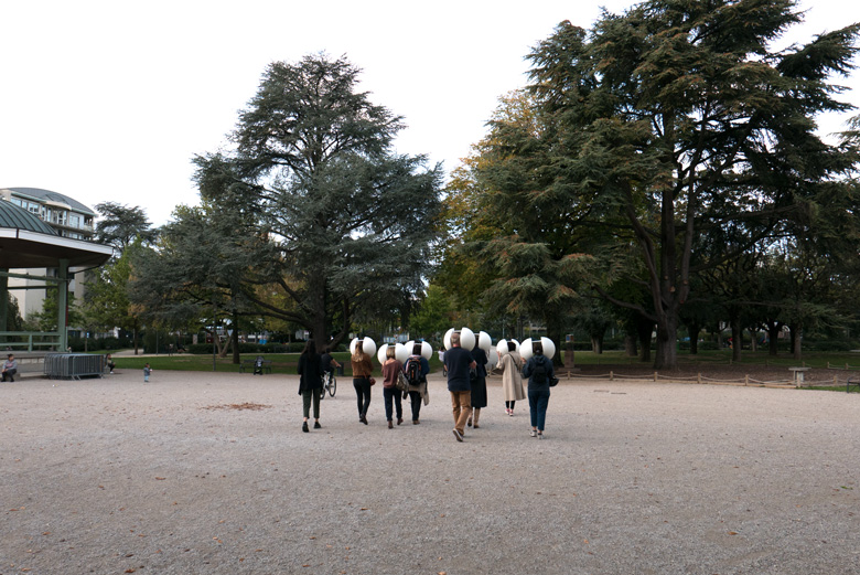 Remaining Observant est une situation sonore et collective dans l’espace public de la ville – en compagnie de l’artiste – où un groupe de six personnes est invité à expérimenter une nouvelle perception sonore avec l’aide d’un casque singulier. Oscillant entre instrument scientifique, prothèse pour l’oreille ou encore «sculpture parlante», les casques proposés s’inspirent d’un dispositif militaire de surveillance aérienne, tombé en désuétude en 1932 avec l’arrivée du radar. Développé industriellement dans les années 30, par l'entreprise hollandaise Waalsdorp, ce dispositif permettait de détecter par l’écoute des sons lointains, dans le ciel – tel que le bruit du moteur d’un avion encore invisible à la vue – dans le but d’anticiper les bombardements allemands. Telle une sorte de prothèse low-tech engageant notre corps, elle fonctionne sans appareil ni électronique, ni numérique. Son efficacité repose sur sa forme parabolique interagissant avec le phénomène acoustique de réflection du son. La marche se propose de mettre en scène la figure de l’Homme aux aguets, soucieux des sons de son environnement urbain.