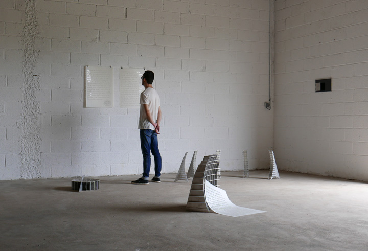Maquettes en aluminium à l’échelle 1/10. Dimensions variables. Posters imprimés sur polytéréphtalate d'éthylène, 50 x 70 cm. Exposition au Hub Hug à Liffré. Produite par GENERATOR/40mcube/EESAB/Self signal, 2016